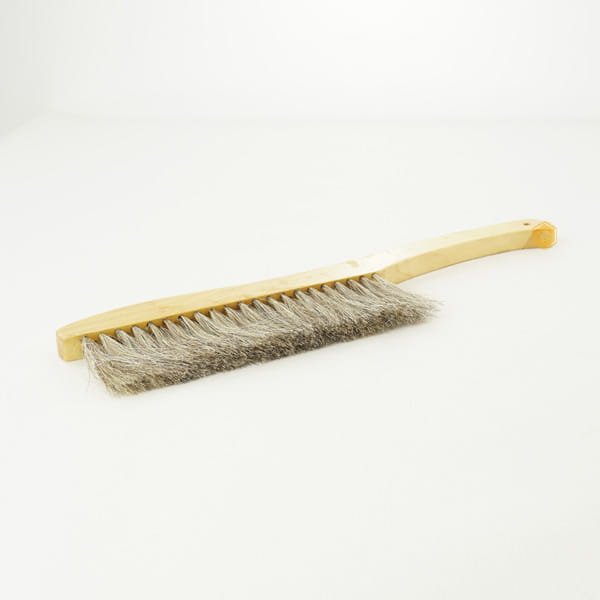 Zmiotka o trzy rzędowym rozstawie miękkiego i sztywnego włosia końskiego.