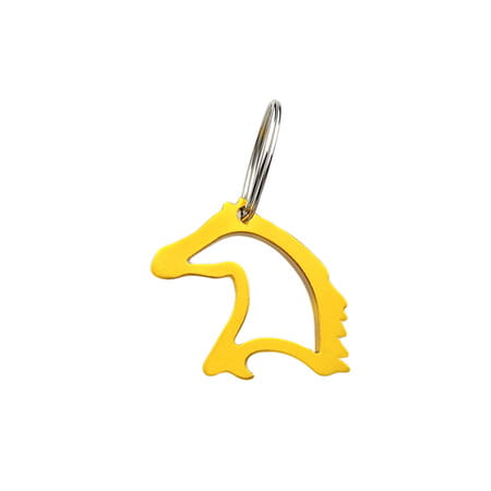 Breloczek w kształcie głowy konia, który jednocześnie jest otwieraczem do butelek. Dostępny w kilku kolorach. Wykonany z aluminium.