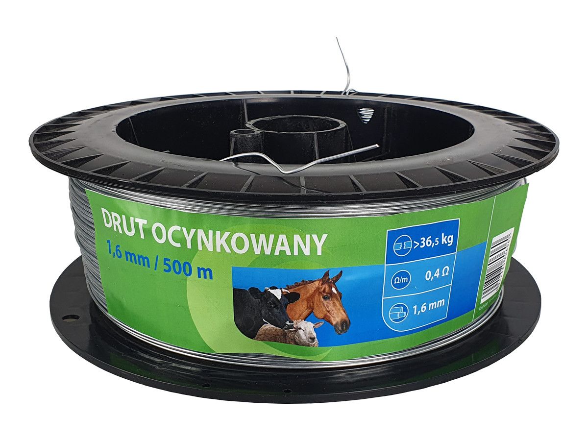 Drut ocynkowany do ogrodzeń elektrycznych dla koni i bydła, 1,6 mm, 500 m, Can Agri