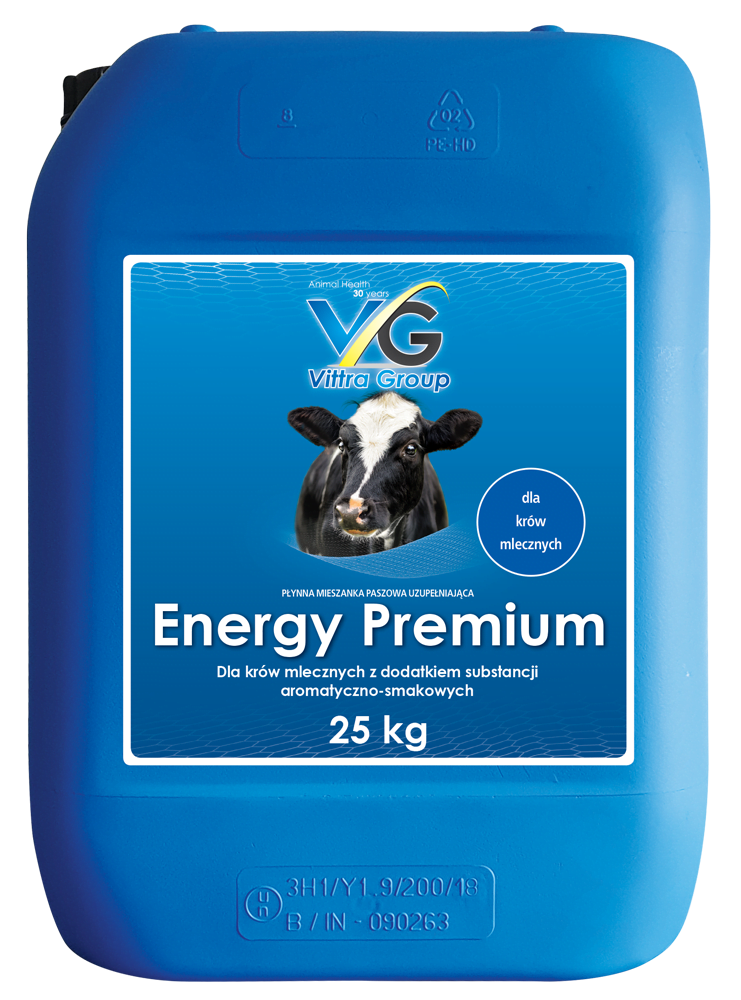 Vittra Energy Premium jest produktem uzyskiwanym w procesie transestryfikacji kwasów tłuszczowych z wysokiej jakości olejów roślinnych. Może być stosowana jako źródło energii w paszach przeznaczonych dla przeżuwaczy. Dodatek specjalnej kompozycji substancji aromatyczno – smakowych poprawia smakowitość pasz, pobudza apetyt oraz utrzymuje wilgotność TMR-u.