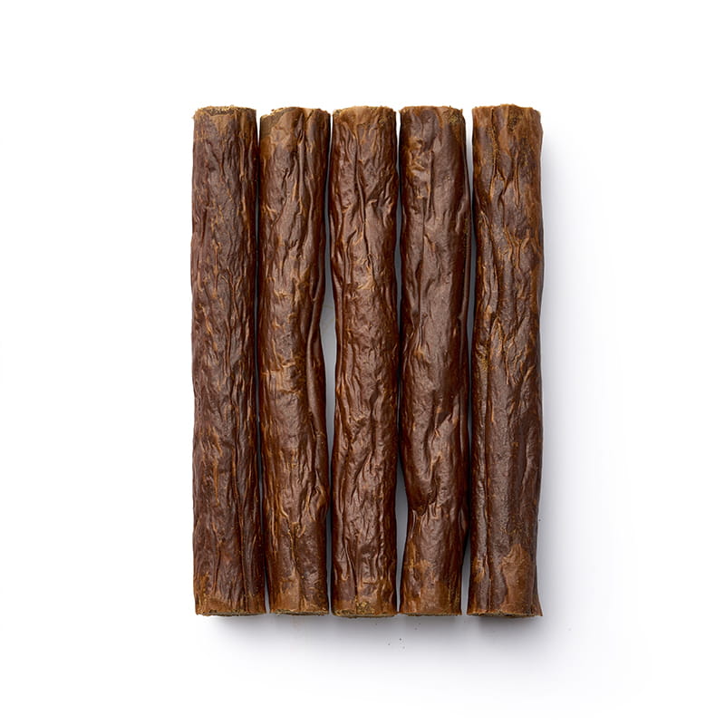 idealna przekąska – świetnie sprawdza się jako przysmak treningowy lub przekąska dla urozmaicenia codziennej diety, wysoka zawartość mięsa – składa się w 98% z mięsa sarny w naturalnym jelicie wołowym, mięso poddane delikatnemu i długotrwałemu suszeniu – co pozwala zachować wyjątkowy smak i aromat, bez substancji wabiących, soli, cukru ani gliceryny, bezglutenowe, odpowiednie dla psów wszystkich ras i w każdym wieku