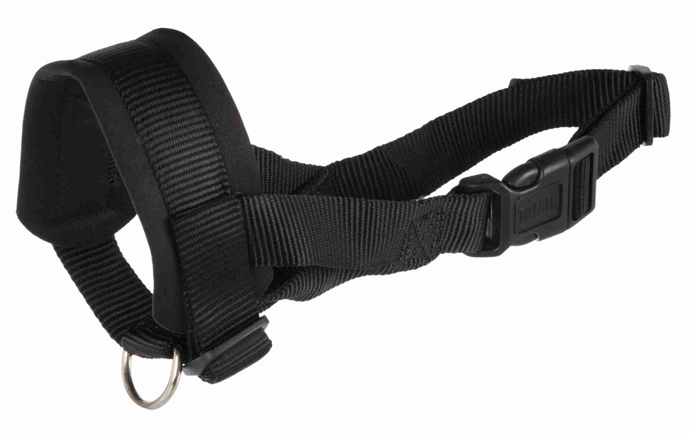 – metalowa sprzączka zamontowana w dolnej części kagańca pozwala na prowadzenie psa za głowę, co zapewnia większą kontrolę