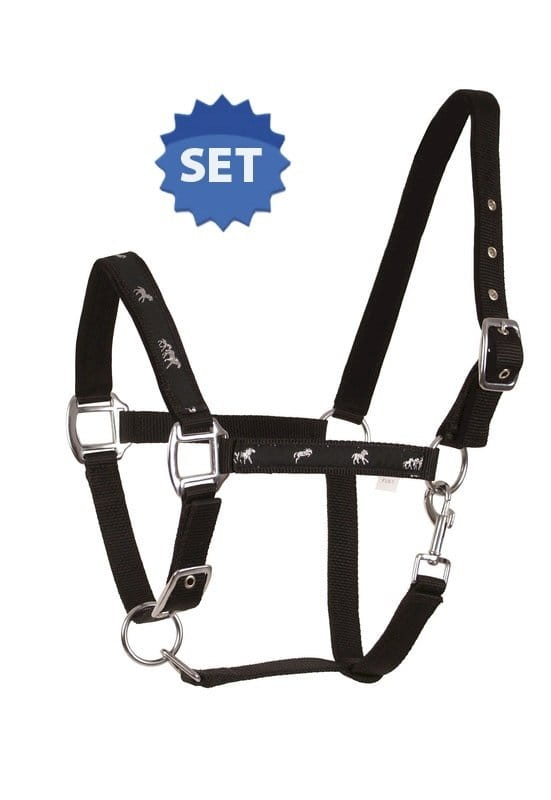 Elegancki kantar w koniki, wykonany z mocnego nylonu. Podszyty miękkim syntetycznym zamszem. Podwójna regulacja, w części potylicznej i nachrapnikowej. Wytrzymałe sprzączki. Kolor: czarny