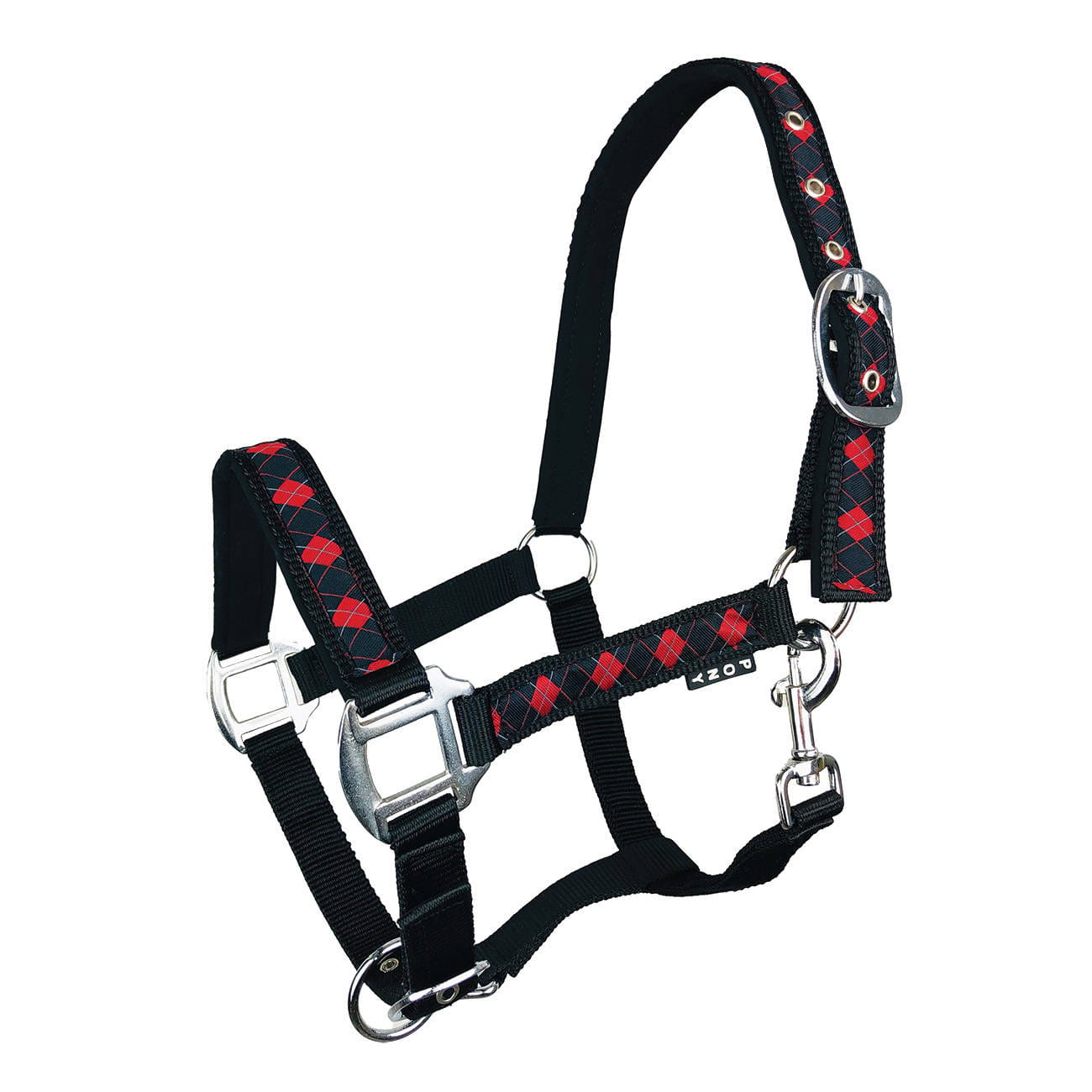 Dzięki licznym wariantom kolorystycznym i szerokiej rozmiarówce, każdy znajdzie odpowiedni model dla siebie. kantar ozdobiony wzorem w romby podszyty imitacją nubuku posiada regulację na pasku potylicznym i nachrapniku okucia w srebrnym kolorze