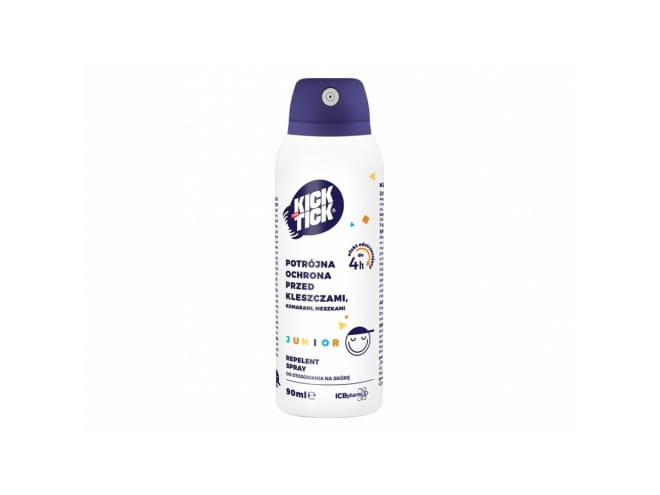Przyjazna i bezpieczna formuła Repelent spray Kick The Tick Max Plus Junior 90 ml to nowoczesny repelent przeciwko kleszczom i komarom, który nanosimy bezpośrednio na skórę.