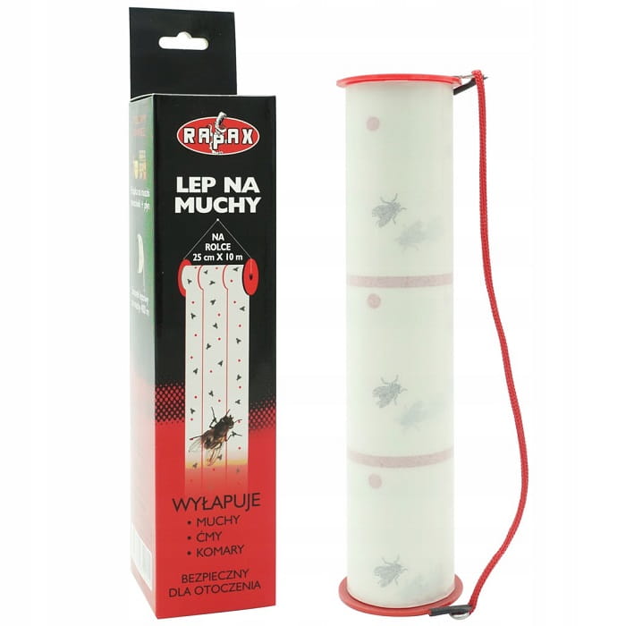 SPOSÓB UŻYCIA: Rolkę z lepem zawiesić w miejscu gromadzenia się much, a następnie rozwijać w miarę potrzeb.