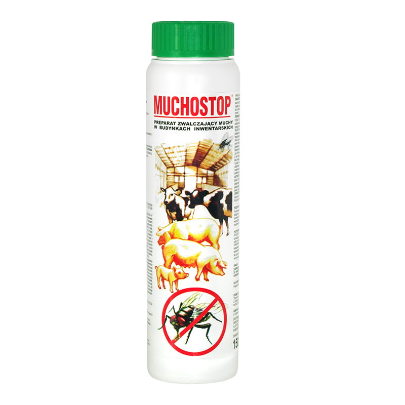 Muchostop jest produktem do zwalczania much wewnątrz pomieszczeń, w których przebywają zwierzęta oraz wewnątrz miejsc przechowywania odchodów zwierzęcych.