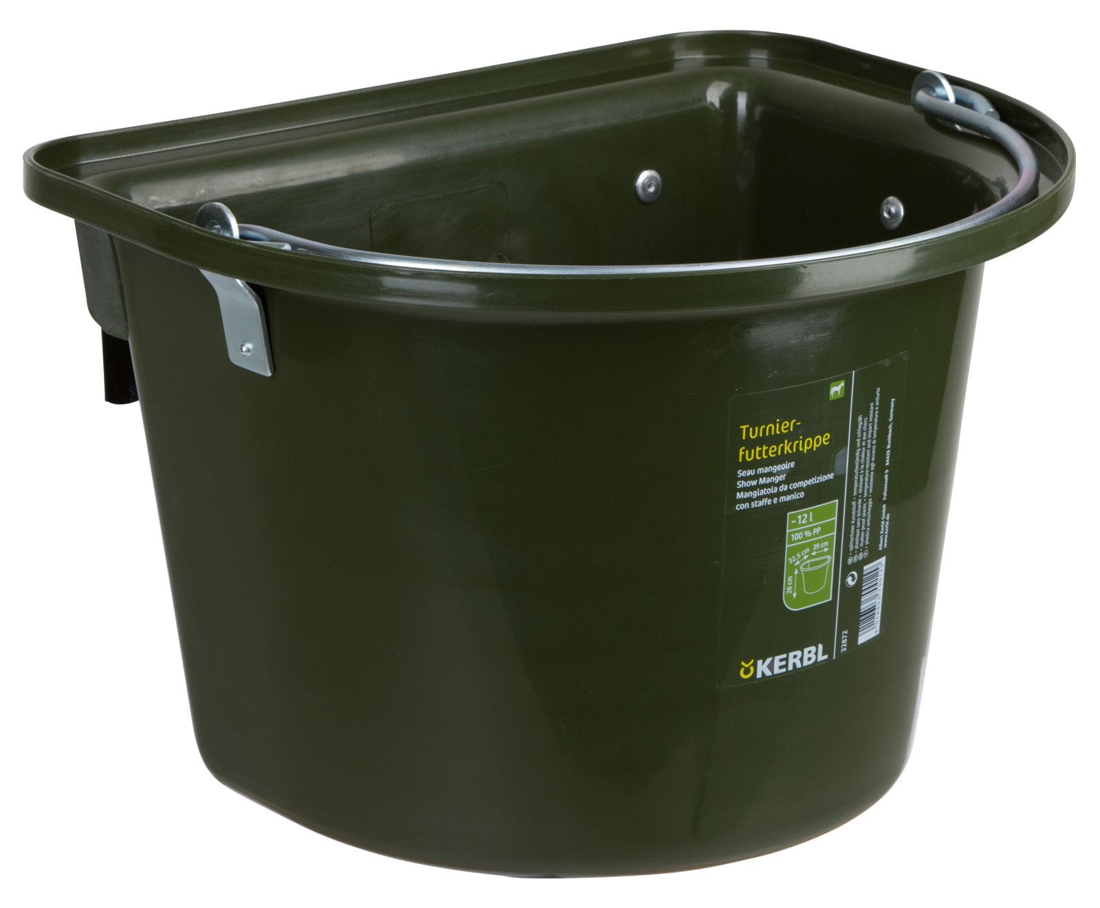 Pojemnik na paszę, z metalowym zaczepem do zawieszania.